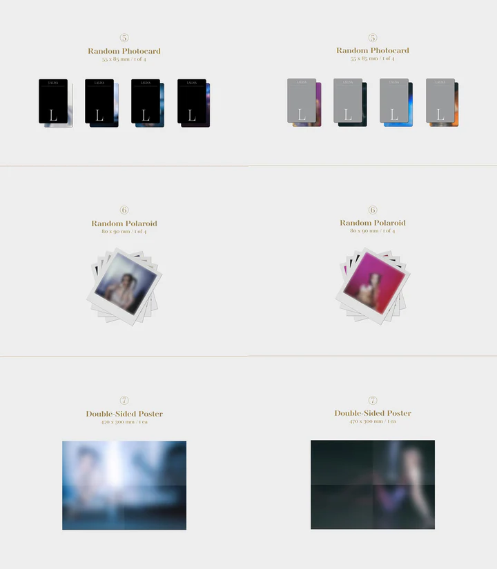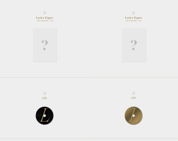 – Included: Package Box + CD + Photo Book (88p) + Lyrics (1ea) + Random Photo Card (1 of 4) + Random Polaroid (1 of 4) + Double Sided Poster (1ea / First Press Only) + Random Rare Gold Photo Card (1 of 4 / First Press Only) + Rare Golden Ticket (1ea / Only 50ea)